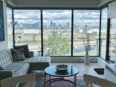 Unique 3.5 condo with walk-in closet for rent in Evolo S Luxury building, with an unbeatable and unobstructed view of St-Lawrence River, Downtown, and Mont-Royal. The bedroom comfortably fits a king-size bed and 2-night tables. Located between two parks, within walking distance from the new REM station, and a five-minute drive from downtown Montreal. Amenities include a Nordic spa, a fully equipped gym, an outdoor pool, magnificent gardens, a lounge, guest suites, and concierge. Possibility of parking at an additional fee.
