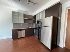 Bright unfurnished 2 Bedrooms w/ 1 full bath condo for rent in Downtown Core. This unit is approximately 718 sq ft and features a functional split layout. Lots of natural light, floor to ceiling windows w/ modern roller blinds throughout. 9ft ceilings. Located on the 6th floor. The unit comes with 5 appliances (fridge, stove/oven, dishwasher) and en-suite laundry (washer & dryer). Engineered hardwood.