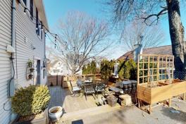Large windows in the spacious living room flood sunlight over the cedar wood wall and bookshelves. Partition provides privacy for office area. In Home stacked washer and dryer tucked away behind an oversized wood door with wrought iron pull next to custom built-in bookshelf is a secret sneaky murphy closet for extra storage. Noteworthy gleaming hardwood floors throughout, updated multipane windows, forced hot air gas heating, extra storage in basement, and fully insulated attic. Large deck bordered gracefully by arborvitaes is a peaceful retreat leading to the herringbone brick path to a rounded patio perfect for your fire pit evening lined by a custom and lit privacy fence. Close to buses & 95/Rte2.