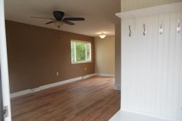 Large open living room/dining area with LVT floor. Large deck off the Dining room. Kitchen includes new soft close cabinetry, Upgraded granite counter tops, SS appliances - Gas Stove, Microwave, Refrigerator, Dishwasher, Garbage Disposal. 2 bedrooms with large closets and smaller office/craft room. Full bath all on the first/main level.