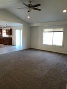 3 Bedrooms 2 Bathrooms w/ attached 2 car garage. Tile flooring in entry, kitchen, dining room, and bathrooms. Carpet in bedrooms, hall, and and living room. Vaulted ceilings. Kitchen includes granite counter tops, garbage disposal, and stainless steel appliances: gas stove, hood vent microwave, side by side refrigerator with ice and water dispenser, and dishwasher. Master bedroom has large walk in closet. Master bath has double sink. Upgraded ceiling fans in living room and master bedroom.