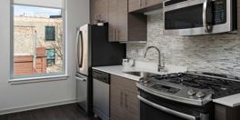 Large open living spaces highlight these modern, tasteful residences, showcased by 10’ ceilings, oversized windows and plank flooring. Premium cabinets, stainless steel appliances and quartz countertops mark the kitchen areas, which also include undermount sinks and gas stoves. In-unit washers and dryers and resident-controlled heating and air conditioning are also standard. Private patios, balconies or Juliet balconies are offered in select units.