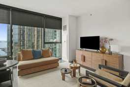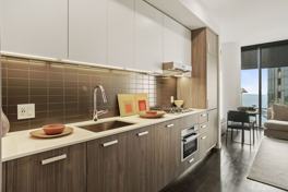 These condo-quality apartments feature lavish finishes including Bosch kitchen appliances, quartz countertops, designer cabinetry, 9-foot ceilings, wide-plank flooring, and brilliant floor-to-ceiling windows.  Enjoy cooking at home with a chic gas stove and ventilated hood. Intelligent design is integrated in each unit, including keyless entry, custom walk-in closet systems and discreet in-unit laundry. Select residences have private balconies with stunning views of the lake, river or skyline.