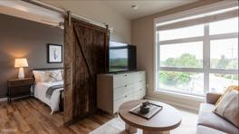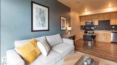 Fully Furnished modern tones throughout, from the open concept floor-plan to the sleek kitchen with stainless steel appliances. The included furniture and decor are expertly selected and placed for this individual layout, and the mounted Samsung Smart TVs are ready for your enjoyment. Finally, your home is filled with convenient amenities, from the luxurious bedding to the completely stocked kitchen. Find more such homes at housestay dot com