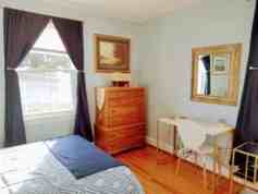 A beautifully renovated and furnished bedroom with beautiful artwork of mountain-scapes in an all-inclusive furnished household is available in Northwest Roanoke, one block from Eureka Park with its massive old growth trees and 4 resurfaced free tennis courts, walking distance to Lick Run Greenway, 8 minutes drive to downtown Roanoke, 9 minutes to Valley View Mall, 11 minutes to Carilion Hospital, 13 minutes to Lewis Gale Hospital. There is a city bus stop on the same block as the house. Private bathroom on same level and next to room. A few single health professionals live on the upper floor and floor below.
