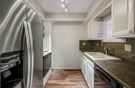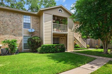 Perfect for roommates! This split floorplan offers privacy for both bedrooms as they are on opposite sides of the condo with shared areas in between. Unit is located on the lower level with private wood decked patio accessible through French doors from primary bedroom. The primary bedroom has walk-in closet and an ensuite bathroom which has a stackable washer and dryer combo. Secondary bedroom also has a walk-in closet and hall bathroom nearby. There are large windows to bring in natural light. Flooring is primarily vinyl plank. Countertops are granite in kitchen and primary bedroom. Stay cool with ceiling fans in living room and both bedrooms. Parking for condo unit is assigned with one spot covered and one uncovered. There is locked storage outside at the entry porch. Community has a pool and ample guest parking. Conveniently located with easy access to I-10 and Loop 610. Ready for a new adventure? Come see where it could begin.