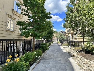 Available March 1, 2025. Two bedroom / Two bathroom unfurnished townhouse condo at The Gardens At Queen complex. GREAT downtown location, walk to parks, transit, shopping in Queen/Bathurst Street area. LARGE open-concept kitchen-living-dining room. Two large bedrooms each include mirrored closets. Two 4 piece bathrooms. New flooring, freshly painted throughout, window drapery/wooden shutters. Kitchen with S/S fridge, stove, built in microwave and dishwasher. New washer/dryer. Gas BBQ on 165 sq. ft. terrace. Central air-conditioning (brand new AC unit), forced air heating, 24-hour security provided at complex. Utilities included. (does not include cable internet)ROOMS: Living: 13 x 12.5 ft.; Dining: 9 x 8.6 ft.; Kitchen: 8.1 x 8 ft. Granite counter, S/S Appl. tile floor; Master Br: 11.1 x 7.7 ft. with double closet; Second Br: 9.8 x 8.6 ft. with double closet; 4-PC Bathroom 1: 7.6 x 4.9 ft.; 4-PC Bathroom 2: 7.7 x 5.1 ft. PARKING STORAGE LOCKER Underground parking available for $140/mth and storage locker for $60/mth