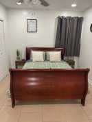 The master suite includes a 50" tv, two comfy lounge chairs, and a bar for when the adults want some time alone.