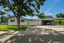 Welcome to this charming single-level home offering comfort, convenience, and great outdoor living spaces. Inside, you'll find a bright living room with large windows, wood accents, and plenty of room to relax or entertain. The open dining area flows seamlessly into the kitchen, featuring stainless steel appliances, white cabinetry, and ample storage. Sliding glass doors lead to the covered back patio, perfect for summer barbecues or quiet evenings outdoors. This home includes comfortable bedrooms with updated flooring, a clean modern bath, and thoughtful touches throughout. Outside, enjoy a private fenced yard with mature trees, a storage shed, and plenty of space for pets or play. A two-car garage plus additional covered parking ensures room for vehicles, toys, or projects.