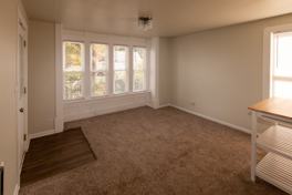 Gorgeous front windows in this one bedroom unit. All windows are dual paned for comfort and efficiency. Added kitchen island is movable to customize your space and it provides additional storage and counterspace. Bedroom has 2 closets and a full bathroom. This is a clean unit with fresh paint and new miniblinds. Parking space in the back. Always plenty of street parking. Laundry room is accesses from outside and has a washer and dryer. Front porch is enclosed to keep the weather out. Pets may be negotiable.