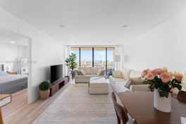 This stylish 1-bedroom, 1-bathroom condo offers a balcony with city views.