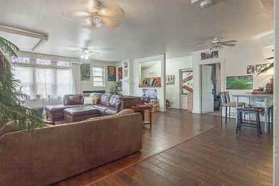 Three Bedroom with large living area and hardwood floors.