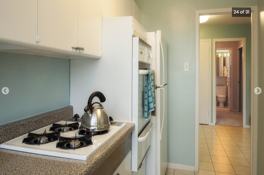 This apartment features an open-concept living room/dining room as well as a galley kitchen, with a dishwasher in select units. There is wall to wall carpeting throughout the unit with tiling in the kitchen and bathroom. The unit amenities include air conditioning, ample closet space, and select units feature a balcony.