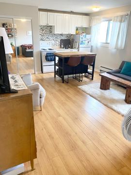 This bright, cheerful studio unit is located on the 2nd storey of a secure 6 storey building with elevator! Recently installed high-quality laminate flooring looks great and is easy to maintain. Open galley-style kitchen! Excellent north-facing view of downtown Ottawa and the Gatineau Hills. Island in photos and video belongs to tenant and does not come included with the unit