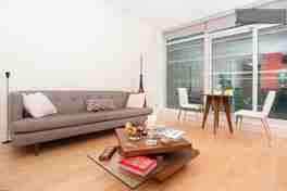 Welcome To Mozo Loft. Bright&Wide Furnished Unit With View Of King St. Wall-To-Wall Windows, 9' High Concrete Ceiling, Modern Furniture, Beautiful View, Calm And Relax Vibe. Wash&Dry Ensuite. Steps To St. Lawrence Market. Financial District, Subway, George Brown College, Distillery District. Hydro, High Speed Internet, Apple Tv With Netfix Included. No Pets Or Smokng. Short Term Minimum 3 Months, Long Term One Year.