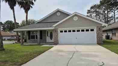 Built August 2007, this 1,954 SF home is ideally located on a large corner lot; nicely landscaped with 6' fenced backyard and highlighted for a truly Florida charm with palm trees. There's ample yard with easy street access. Ideally located in an established, low traffic, family friendly HOA community, this home is within walking distance of the Tiger Point Sports Complex where you can enjoy tennis, softball, soccer, basketball, a playground, walking/jogging paved pathway, a community center and more! Walk, drive or hop on your golf cart and go shopping, dining, to the park, doctor's offices or even to the Tiger Point Golf Club and play a round of golf - all on golf cart legal roads. Victorian Village's ideal location, across from the south end of the Garcon Point Bridge also provides ready access inland and driving time to either Pensacola or Navarre beach is only about 15-20 minutes. This home has been freshly painted and has an open floor plan with cathedral ceilings in family and living rooms; ceiling fans in all rooms and a large walk-in master bedroom closet. Home was renovated in August 2018: tiled throughout all common areas and bathrooms, newer carpet in all bedrooms. Kitchen includes refrigerator and dishwasher microwave and self-cleaning, glass top, convection /air-fry stove . Even the kitchen cabinets have been freshly painted! The garage floor was epoxy coated. There's ample above garage plywood floored storage with a Chamberlain wi-fi garage door opener. A must see!