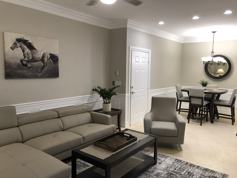 Furnished and equipped -First Floor Condo 2 bedrooms / 2 bathrooms. Gated Community at The Tides in Pelican Landing. Very spacious and open living floor plan has travertine tile flooring throughout. Features include granite countertops, granite backsplash and granite counters in each bathroom. 2 large custom walking custom closets and laundry room in the unit. Many, many custom upgrades throughout the unit. Water is included in the rent. Located within minutes to the beach, shops and restaurants. Community amenities include tropical style pool with sun deck and hot tub, fitness center, tennis court and basketball court. Smoke free community. No Pets. 12-month lease.