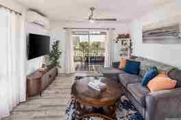 AVAILABLE NOW: Beautifully remodeled second-floor unit featuring a spacious lanai. This 2-bedroom, 2-bathroom home (both with tubs) includes 1 assigned parking stall.
