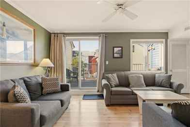 Live in the Heart of Newport's Iconic Brick Market Place! Welcome to this beautifully furnished two bedroom, two bathroom condominium offering 1,181 square feet of comfortable, coastal living. Perfectly situated among the charming shops, cafes, and restaurants of Brick Market Place, this multi-level home places you right in the center of everything Newport has to offer. Step inside from the marketplace level entrance and head up to the bright and spacious main floor. The open kitchen features a generous center island with seating, plenty of counter space, and room to dine, ideal for everyday living or entertaining. The living room is warm and inviting, flowing seamlessly onto a western-facing outdoor deck where you can relax and take in Newport's golden sunsets. Upstairs, you'll find two large bedrooms, each furnished with queen sized beds and ample closet space. The grand primary bathroom offers a luxurious retreat with a jetted soaking tub and separate shower. The second full bath features a combined tub and shower, perfect for guests or roommates. The condominium includes two parking spaces (one reserved, one open.) This property is furnished for a turnkey experience. Winter price is $4000.00 per month through June. July and August are $10,000.00 per month. Year round the fee is $5000.00 per month. Enjoy the best of Newport living, steps from the waterfront, boutiques, dining, and the vibrant charm of the City by the Sea. You will absolutely love calling this place home!