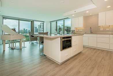 Downtown Living at its finest! Top of the line renovations make this 3 bedroom/2 bath corner unit exquisite! Enjoy the city and mountain views as you relax on the spacious lanai. Floor to ceiling windows in every room give this home a bright and airy feel. Renovated kitchen cabinets, countertops and plumbing fixtures portray a sleek, clean look. The main ensuite bath has been outfitted with a modern soaking tub and glassed in wet room. Bathrooms have also been appointed with cabinetry that allow for ample storage. Luxury vinyl flooring adds to the modern decor. In addition to a full sized washer and dryer, the unit has an energy efficient hybrid water heater and solar shades that have cut the electric billing for this unit in half!