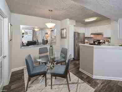 Faux wood flooring throughout, paneled doors, plantation style wood blinds, 10-foot ceilings with crown molding and decorative woodwork create the look that you have been searching for.