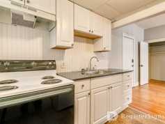 The kitchen has new cabinets countertops stainless steel sink and faucet. The range has been replaced since these photos were taken. The bath has new tile throughout wood open shelves a new vanity cabinet and new high-end plumbing fixtures. There are three huge closets and it's been professionally cleaned.