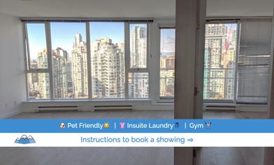Address: 233 Robson Street, Vancouver, BC Available: April 1st! We are offering a bright 1 bedroom + den / 1 bathroom sub-penthouse condo featuring 603 sqft of living space plus a 30 sqft private balcony. This top-floor home offers extraordinary city views and north-west facing exposure, bringing in natural light and stunning outlooks. The unit features hardwood flooring, air conditioning, and in-suite laundry. The kitchen is well equipped with fridge, stove, dishwasher, and microwave. The living area opens onto the private balcony, ideal for relaxing and enjoying the skyline. One storage locker and secure bike storage are included. Parking is available for rent at $200 per month. Residents enjoy access to excellent building amenities located in TV Tower 1, with interior access from the building, including: fitness centre, theatre room, hot tub, yoga studio and party room. Located in the heart of Downtown Vancouver, this home is steps from Robson Street shopping, restaurants, entertainment venues, and transit. BC Place, Rogers Arena, and the Vancouver Public Library are all within walking distance. - Approximate Square Footage: 603 - Balcony: 30 sqft