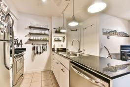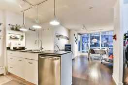 One of the most spacious & exceptional layouts for a 1 + den unit at apex. This sun-bathed condo located in prime downtown features: 713 sf (35 sf balcony), lam flooring throughout, open concept kitch w/granite counters & ss appliances, large separate den, flr to ceiling wndws, locker & underground parking. World class building amenities: pool/spa, basketball crt., club size gym, party rm & billiard table, 24hr concierge. 97% walk score & 100% transit score.