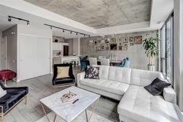 Stylish, Spacious 2 Bedroom + 2.5 Bath Penthouse Suite In The Brant Park! Approximately 1200Sq/Ft + Large South-Facing Terrace W/Gas Line. Features & Finishes Incl Floor-To-Ceiling Windows, Exposed Concrete Feature Walls, Engineered Hardwood Floors, European-Style Kitchen, Stone Counters W/New Custom Island Breakfast Bar & Stainless Steel Appliances. 10 Foot Ceilings, Sleek Modern Steel & Glass Staircase. 1 Parking Spot & 1 Oversized Walk-In Storage Unit