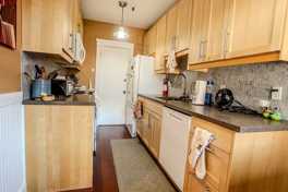 Sunny and updated 1-bedroom condo in a well-maintained elevator building on Comm Ave. Features include a renovated kitchen with granite counters, gas stove, dishwasher, and maple cabinets. Spacious living room with hardwood floors, oversized bedroom, and classic tiled bathroom with pedestal sink and full tub.