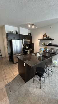 Cozy 2 bedroom Downtown Condo - Riverfront PointeDiscover upscale living in this beautiful 2-bedroom, 2-bathroom corner condo in East Village, where urban convenience meets modern comfort. This stylish unit offers heated underground parking and is located just steps from shopping, dining, theater, and Calgary's scenic river pathway system.Inside, the open-concept floor plan flows seamlessly from a functional kitchen to a spacious living and dining area, making it perfect for entertaining or relaxing. Large windows flood the condo with natural light, and a cozy nook provides the ideal space for a home office. Enjoy fresh air on the covered patio, perfect for outdoor relaxation. The primary bedroom includes a full-size closet with custom organizers, ensuring ample storage, and the condo features a master bathroom with a four-piece suite, as well as a full common bathroom. For added convenience, a washer and dryer are neatly tucked away in a closet. Residents of Riverfront Pointe enjoy exclusive access to amenities like a main-level fitness center. This condo offers the best of downtown living and is a must-see for those looking to make the heart of Calgary their home. - The place is perfect for sharing for 2 individuals. Since there's 2 bedroom and 2 bathroom. Rent - $1875 Utilities - Water and Heat included Parking - 1 underground parking included Please contact us for viewings.