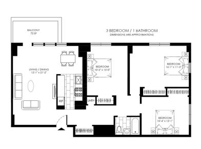 Spacious 3 br featuring modern kitchen, stainless steel appliances, balcony, lot's of closet space and light.