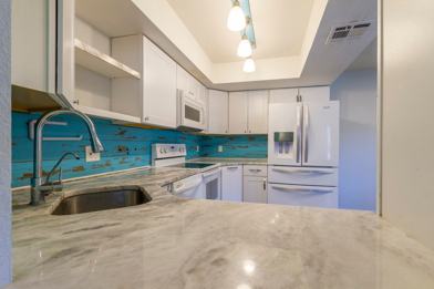 Available October 1st! Beautiful 2 bedroom condo in a great location! Close to shopping and everything you need? Cozy fireplace in living room and redesigned shaker kitchen cabinets (with pull outs). quartz counter tops, matching appliances, 4 door refrigerator. Samsung front load washer & dryer. Porcelain tile flooring throughout with 5"baseboards. Master bedroom features a walk in closet with organizer system for all your clothing and accessories. Bathrooms have beautiful crystal type lighting with a walk in shower and updated tile. Outside you have a spacious pool with a BBQ area for those nice summer days. Plenty of parking on the grounds for you and your guests. This one will not last!! $1400 includes sewer and trash. Tenant places gas and electric.