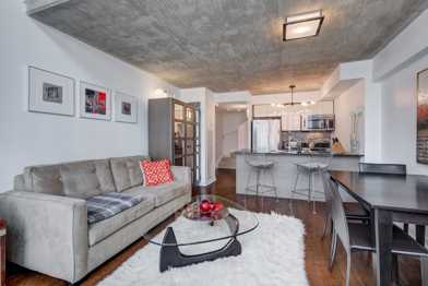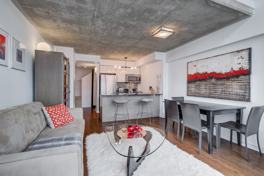Suite PH2 is a spacious 721 square foot 2-storey 1-bedroom executive rental located in the much desired Charlotte lofts at 36 Charlotte Street. This penthouse features an open concept living and dining area with bright eastern views as viewed through your 16 foot high floor to ceiling windows. Entertain and enjoy meal prep in your kitchen with modern cabinetry, newer stainless steel appliances, granite counters, and breakfast bar. Retreat to your second floor master bedroom with exposed concrete celings, large mirrored closet with organizers, and fabulous 4-Piece bathroom. This unit makes the perfect pied-à-terre for executives or those that just want to move in without the hassle of buying new furniture. Includes storage locker (Parking extra cost). Walkscore of 100 and Transitscore of 100.