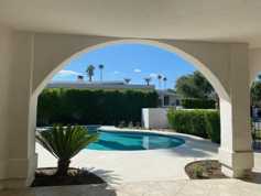 This magnificent Spanish style home is located in the heart of prestigious Indian Wells on a quiet cul-de-sac. The almost 3,700 sf newly remodeled 5BR/3.5BA pool home offers views, an open floor plan, and all the charm & amenities you're looking for in a desert home. South mountain views from the arched courtyard & pool/spa. Double door entry leads into living areas with high ceilings, new 9-inch white oak flooring throughout, freshly painted walls, & all new furniture, rugs, & drapes from Restoration Hardware and designer boutiques that specialize in sustainable materials. Huge entertainer's kitchen w/ large waterfall island, 48' Wolf range, Subzero refrigerator, Asko dishwasher, farm sink, Rohl faucet, new LG washer and dryer, storage galore, quartz countertops, & kitchen nook. Large living room with advanced technology projector television, separate family room, dining room with 11-ft table, office, & gym. Gorgeous over-sized master suite provides a relaxing retreat w/ generously proportioned master bath w/ walk-in closet, French doors, & cathedral-domed ceiling. Linen and down bedding for a luxurious night's sleep. New dual AC units and tankless water heater. Private backyard with delicious mature citrus trees. The home continues to be furnished with additional beautiful items and more interior photos are forthcoming. Rate varies by month, summer and shoulder seasons have lower rates. Please inquire with listing office.