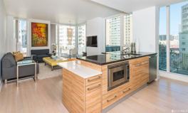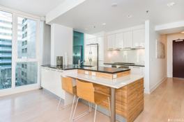 Delight in urban SF living in this full service city view home at BLU. The two bedroom, two bath corner home features floor-to-ceiling windows, hardwood floors, a chef's kitchen with Viking stainless steel appliances, granite & marble countertops throughout, custom window treatments, in-unit washer dryer, and more. 1 garage parking space included.