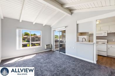 Cozy, second level apartment available in the Monterey Villas Community. This complex is fully equipped with everything you need for entertainment: tennis courts, pool/jacuzzi, fitness center, sauna, volleyball court, and a community clubhouse with a pool table! The home is 500 sq ft and has an open concept with vaulted ceilings, and has a lot of natural light through large windows. There is a wall divider and door, separating the common space from the bedroom and a custom curtain rod added on the side for additional privacy! This unit also has AC, an assigned parking space, and laundry facilities on site! There is ample guest parking throughout the community, and easy access to the 5, 22, and 55 freeways! You won't want to miss this home, just minutes from tons of restaurants and shopping centers. Contact AllView Real Estate to schedule your tour today!