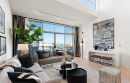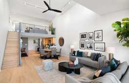 this home is thoughtfully positioned to minimize freeway noise, offering a serene retreat in the heart of the city. Updates include luxe maple floors, plush carpet, modern LED lighting with Lutron dimmers, a smart ceiling fan, and a new LG washer/dryer. The main level features a bright living and dining area with a walk-out deck, a kitchen with stone countertops and stainless steel appliances, a full bathroom, and an alcove perfect for a home office. Upstairs, the loft level offers a spacious bedroom with a skylit ensuite bathroom, LED-lit closets, plush carpeting, and a second private deck. Additional features include an end-of-row parking space, a secure lobby with elevator access, and video intercom. Conveniently located near CalTrain, the T-MUNI line, Chase Center, UCSF, Mission Bay, Pier 70, and freeway access
