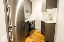 This 2 bedroom apartment features spacious living room, queen sized bedroom, stainless steel kitchen, modern bathroom, hardwood floors, and windows that let in natural light throughout.