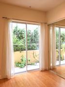 This bright and cheerful unit is 1200+ square feet, and has central A/C and heating, 10-foot high ceilings, granite countertops, a fireplace, a private patio, washer/dryer in-unit, and more.