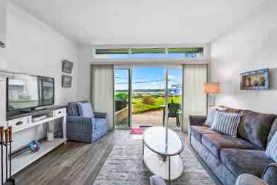 This condo is directly across the street from the beach and has a fabulous view. While sitting next to your real wood fireplace, you can enjoy beautiful sunsets through the large, west-facing glass doors. Multiple restaurants, a sports bar, and a coffee shop are just steps from the condo. On the patio facing the beach is your propane-assisted charcoal BBQ.