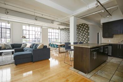 Top floor unit with new york loft type windows.
