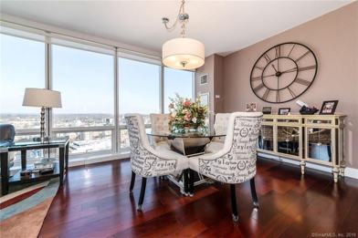 Magnificent view from this corner Penthouse of LI Sound and NYC Skyline- 3BR/3.5BA on the 23rd floor of this premier luxury tower, right in the heart of Stamford. Bright light shines throughout this unit with floor to ceiling windows. Features Gourmet kitchen, granite countertops and island. SS appl, with gas cooking-cherry hardwood floors carry into the LR and DR. Access the balcony off the LR where you can relax and enjoy the specular view. Each bedroom suite has w/w carpet, plenty of closet space, marble and granite bathrooms, master bath has double vanity, glass shower and separate tub. The complex offers unparalleled amenities including lobby w/concierge, lounge, fitness center, party room, billiards room, salt water pool, locker rooms w/sauna, 24hr security, shuttle to/from train, screening room and a ROOFTOP terrace. Also available furnished for $5500/month