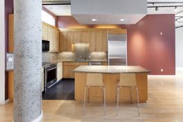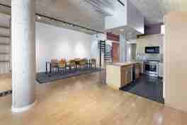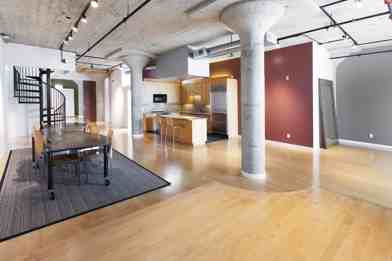 • Concrete floors, columns, oversized windows, soaring ceilings.
