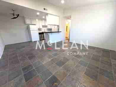 Step inside to find gorgeous slate tile flooring, vaulted ceilings, custom paint, and newer double-pane windows that fill the space with natural light. The custom-tiled kitchen is perfect for cooking and entertaining, and features a brand new dishwasher and stove. You'll love the convenience of having a full-size washer and dryer in-unit.
