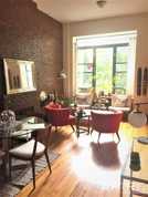 Its a two bedroom two bath with 12 foot ceilings, exposed brick, fireplace, garden facing, with not one not two but three lofts and I block from the park/Hudson.