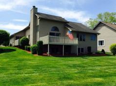 Great stand alone Crystal Springs condo with golf course frontage on 2nd hole. This condo has so much natural light and what a view with the pond and fountain. This villa has a nice kitchen with snack bar, pantry, and eating area with sliding door leading to the smaller of two decks. Combination great room and dining area with gas fireplace, cathedral ceiling, and a slider leading to the large back deck. Main floor has Primary Suite bath has soaking tub and shower. Two other bedrooms and full bath. Main level laundry room. Daylight basement with approximately 80% of the space finished. 2-stall attached garage. Clean as a whistle!
