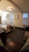 ---Bdrm 3: 2-Closets!...*Closet-1: Walk-in closet (2.5-ft width x 4-ft depth) w/ wall-mounted shelves; **Closet-2: Large sliding-mirrored closet doors (width-4' ft) w/ upper shelving. Bedroom conveniently detached from Common area by a short hallway for extra privacy. (Approx. 15.5'x11.5'--*180sf.) --Bedrooms are roomier than Manhattan studio apts, and Others in Jersey City.
