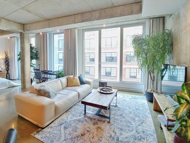 This stunning studio is available in Montreal’s stunning panoramic view of downtown Montreal, the river, and the Quartier des spectacles.
