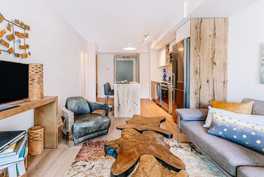 - Suites’ common spaces are furnished with furniture from CB2, EQ3 and Structube